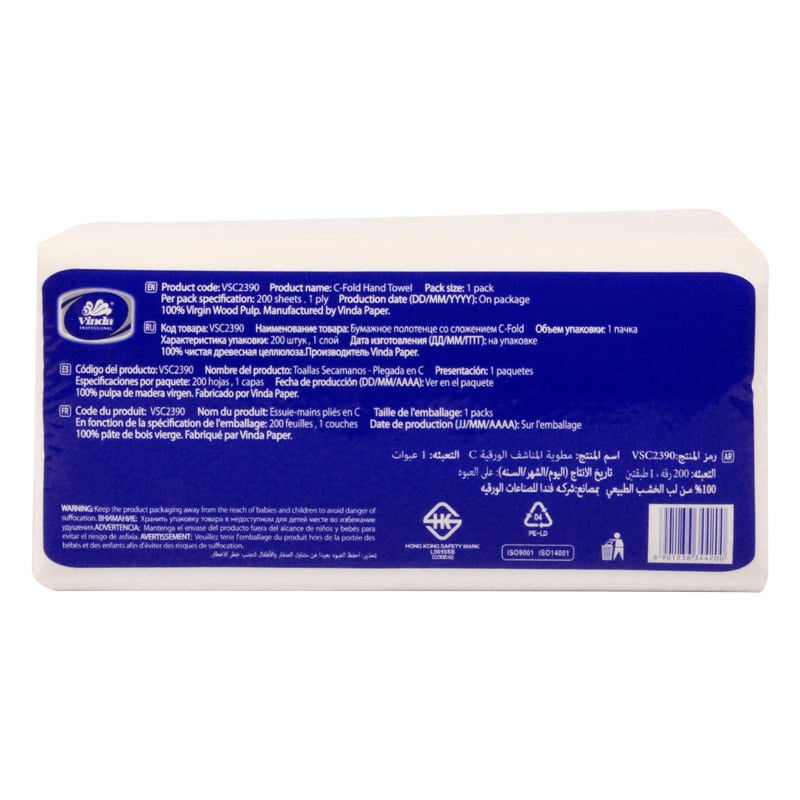 Vinda AFH Super Absorbente 200 hojas 1 capa C-Plegada Toalla de Mano VSC2390 (1 paquete)